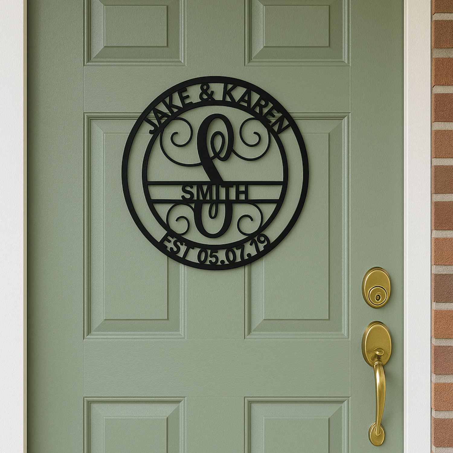 Add an elegant and personalized touch to your home with our Custom Circle Vine Full‑Name Monogram Wall Sign. Beautifully crafted from powder‑coated steel, this sign is built to last and designed to display your family name in style—with versatile looks for both indoor and outdoor settings.