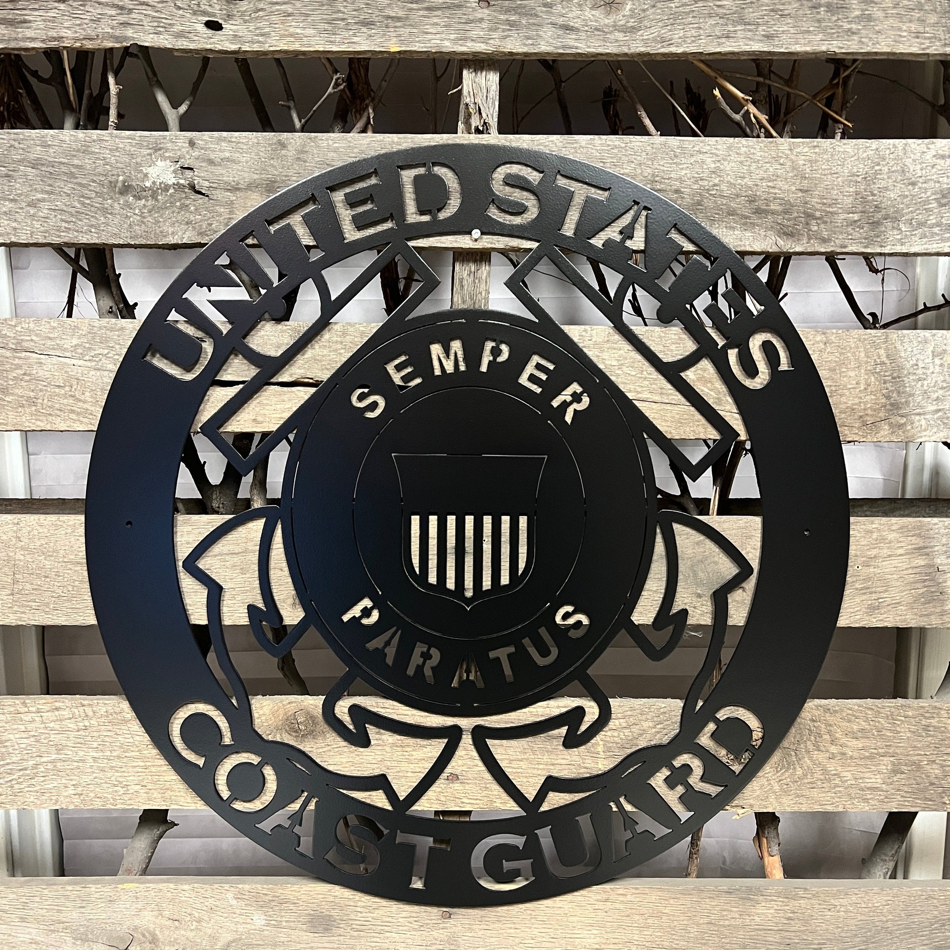 Crafted from heavy‑duty 16‑gauge steel, this striking wall piece features the official USCG emblem — a symbol of maritime service, protection, and commitment. Designed to stand up to indoor or outdoor environments, it’s finished with a durable powder‑coat clear‑or‑color finish that resists weather and wear.